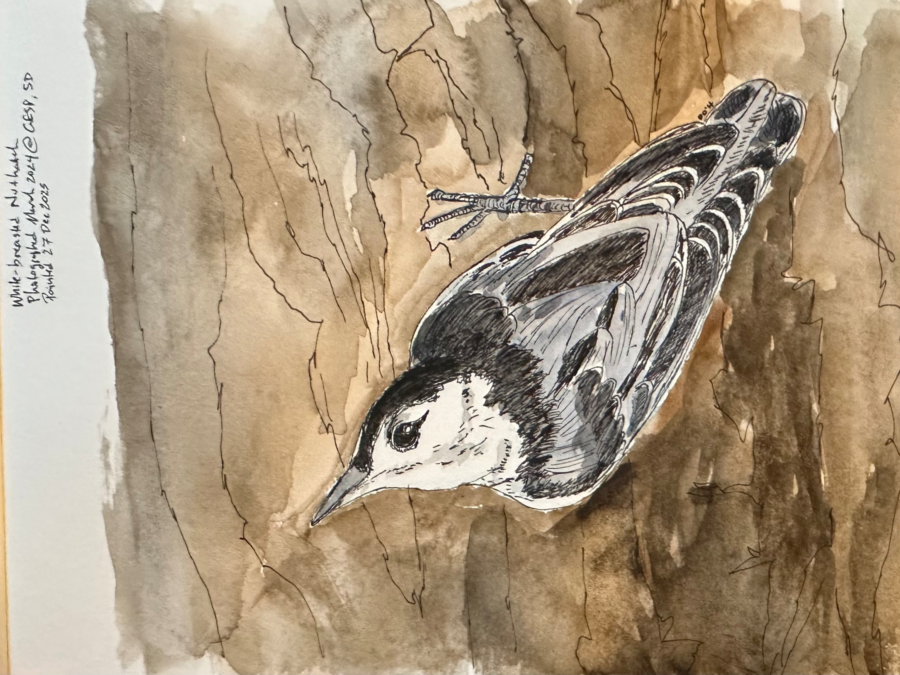 This one is a white-breasted nuthatch I photographed in the Good Earth State Park near Sioux Falls two years ago. I figured it would be interesting to paint two species in the same day so I could see their similarities and differences. Sketching and painting helps me remember species, and it helps me teach them to my students as well.